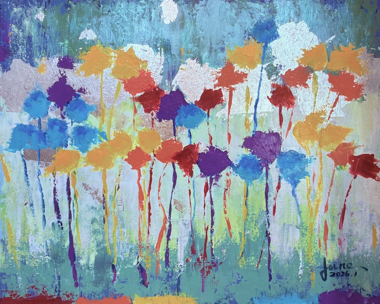 段逸君橫跨學術與藝術領域,長期以結構思考回應感性創作。此次展出不僅展現題材的轉換,更呈現其在色彩與旋律關係上的持續探索。從音符具象化到節奏內化,她使繪畫成為一種無聲卻可被「聆聽」的存在。